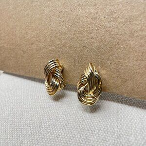 The Jewelry Group TJG Signed Gold Tone Knotted Clip On Statement Earrings Marked