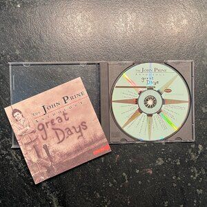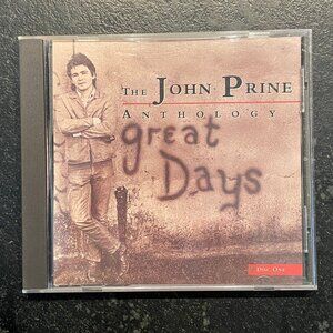 "The John Prine Anthology: great Days." 1993 Rhino Records 2-CD set. The CDs are in great shape: no scuffs or scratches. Together they offer 41 of John Prine's amazing songs. The jewel box of Disc 1 is in like-new condition; the jewel box for Disc 2 has a bit more wear and a cosmetic crack on the front that does not affect its function (see pics). Unfortunately, the outer sleeve cover for the set is missing as is the booklet. 🙁 John Prine is widely acknowledged as one of America's greatest storytellers and a songwriter's songwriter. This is an amazing compilation.