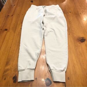 The Joni joggers are made from a 100%-cotton French terry that’s incredibly soft, comfortable, and durable. They feature an elastic waistband and drawstring, pockets, a tapered leg, and ribbing at the ankle. Pair them with the Kristin pullover for a complete monochromatic look.