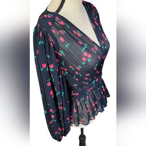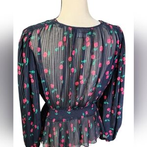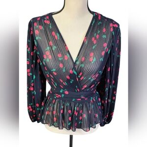 The KOOPLES Cherry Print Pleated Peplum Blouse Women's Size (1) Small