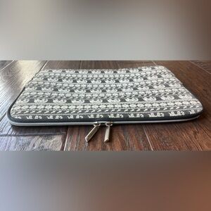 The Kayond Laptop Tablet Sleeve Case Bag is a stylish and functional accessory for both men and women. The black & white exterior with an elephant design print and silver hardware accents gives it a unique and eye-catching look. With a zip closure and foam lining, this medium-sized case is perfect for travel, casual outings, or business meetings. The tan lining ensures both protection and style for your laptop or tablet. Ideal for those who appreciate animal print patterns and want to make a statement with their choice of accessories.