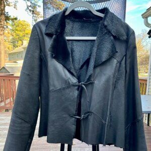 The Keenan Leather 100% LambSkin Black Shearling EUC Women's Jacket Size Small