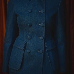 Make a statement in the Lincoln blazer, a bold expression of modern sophistication. Designed with sharp tailoring, this double-breasted silhouette features wrapped buttons and statement flap pockets for a confident, structured look. Pair it with the coordinating trousers and matching top for a striking, head-to-toe ensemble that exudes power and style. New, never worn with original tags and original purchase box.