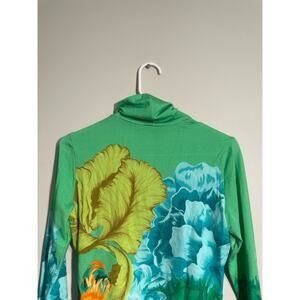 The Kit Green Jade Iris Floral Printed Turtleneck Bamboo Fabric