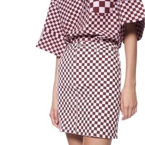 ๐ The Kit Merlot Grid Jean Skirt & Box Shirt ๐