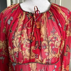 The Kooples 100% Silk Red Royal Butterfly Ruffle Dress Size XS