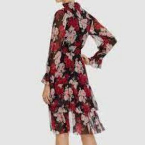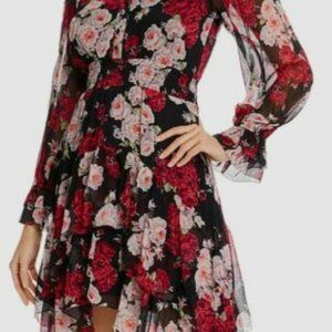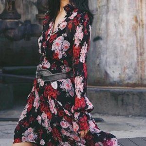The Kooples Black Floral Ruffle V-Neck Button Casual Dress. SZ US Small