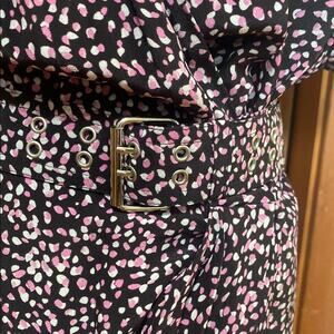 The Kooples Black Pink White Polka Dot Wrap Dress Puff Sleeves Belt Silver - 1