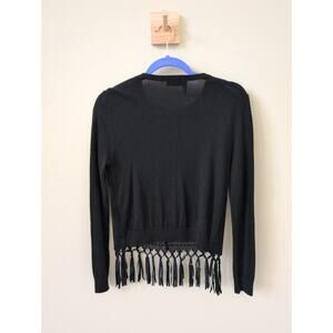 This Kooples Black Genuine Leather Suede Fringe Wool Sweater size Small. In excellent used condition with no notable flaws!