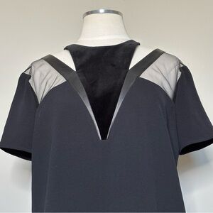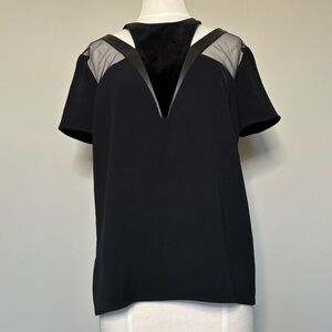 The Kooples Black Velvet Leather Short Sleeve Cutout Top, Large