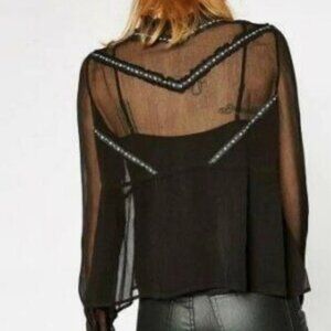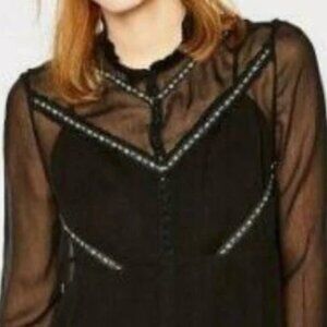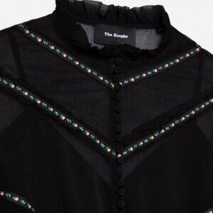 The Kooples Blouse Womens XS Black Long Sleeve Floral Ruffle Neck Whimsigoth