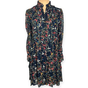 The Kooples Blue Bird Silk Chiffon Dress navy green yellow pink red white Medium