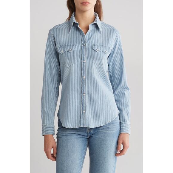 The Kooples Blue Striped Western Snap Shirt Size 3 (Fits M)