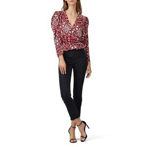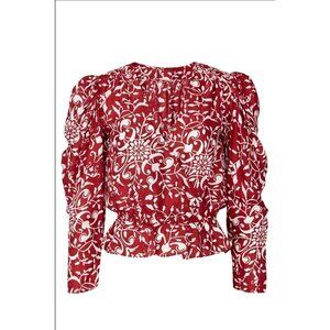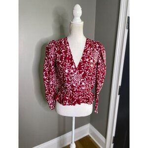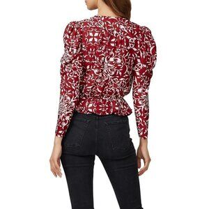 The Kooples Botanical-Print Puff-Sleeve Peplum Silk Top Red Womens Size 2 Medium