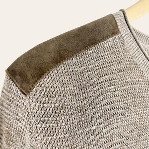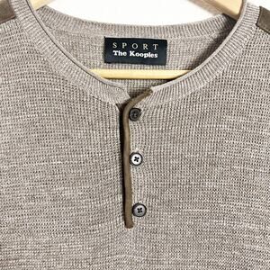 The Kooples Sport Brown Cotton & Leather Henley Long Sleeve Pullover Sweater