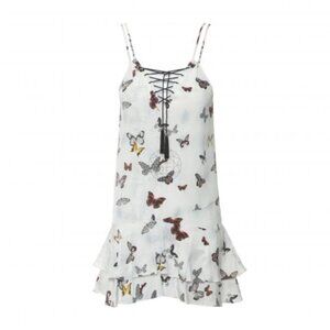The Kooples Butterfly Silk Mini Dress White with Red Yellow Small