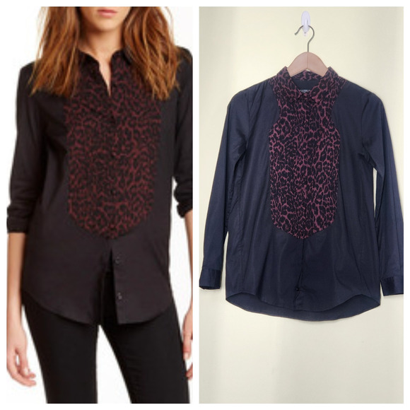 The Kooples Button Down Shirt Womens XS Black Burgundy Leopard Classic Luxe