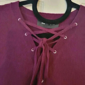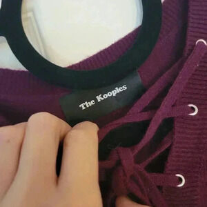 The Kooples Cashmere Wool Lace Up Sweater Berry Wine Pullover
