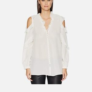 The Kooples Cold Shoulder Ruffled Georgette Blouse