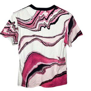 The Kooples Cotton Marble Print T-Shirt Pink & Black Short Sleeve Size Small