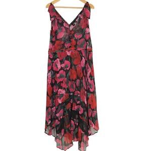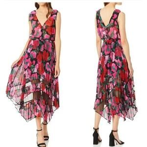 The Kooples Dolce Vita Dress Floral Print Pleated Sleeveless Midi Black Pink 2