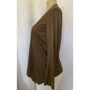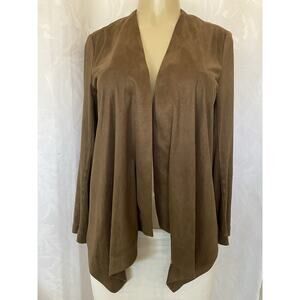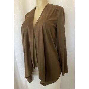 The Kooples Draped Open Front Jacket Faux Suede Brown Long Sleeve 32 XS