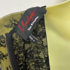 15”FROM THE KOOPLES HERE IS A GORGEOUS DRESS CALLED “MOONLIGHT”. IT IS DONE IN POLY/ELASTANE/COTTON AND LINED THROUGH THE WAIST. IT FEATURES A SCOOP NECK AND LONG BLACK LACE SLEEVES.THE BODICE IS ALL BLACK LACE AND FALLS FROM THE FITTED WAIST IN A FIT & FLARE STYLE ACCENTED WITH THREE ROLLS OF RUFFLES.BACK ZIP. NWOT~ SZ MEDIUM PLEASE NOTE THE MEASUREMENTS