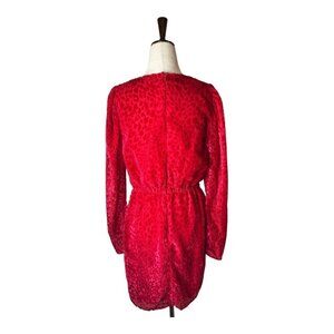 The Kooples Dress Women Large Red Velvet Animal Print Puff Sleeve Mini Party