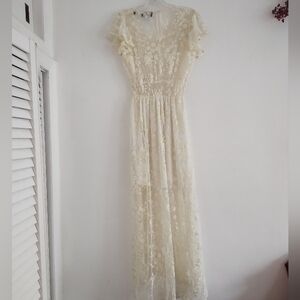 The Kooples Ecru Lace Sheer Details Embroidered Dress