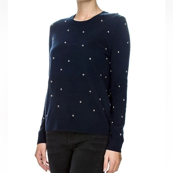 The Kooples | Embellished Navy Wool Cashmere Blend Sweater