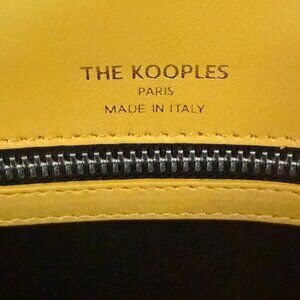 This Kooples leather handbag is the perfect size! Use as a crossbody bag or top handle handbag. Cute yellow color! Perfect for vacation! Silvertone hardware. Minimal, normal wear on the bottom metal hardware. Slight creasing on the bottom leather. Excellent condition and looks brand new. Only used a few times. Retail $325