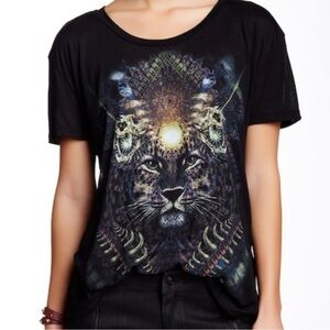 The Kooples Enchanted Tiger Black Short Sleeve Black T-shirt Size Small