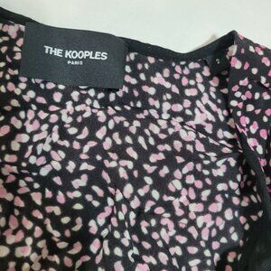 The Kooples Faux Wrap Mini Dress Puffed Sleeves Fully lined Pink Confetti Size 2