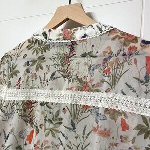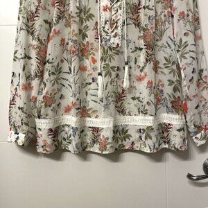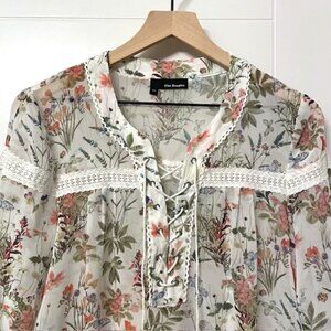 The Kooples Floral Botanical Lace Up Blouse Size XS