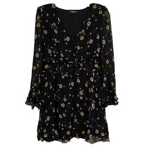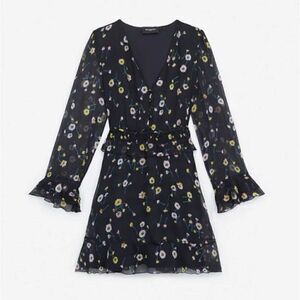 The Kooples Floral Print Smock Waist Ruffled Crepe Mini Dress Size 1 EU/2 US