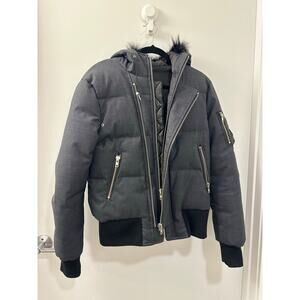 The Kooples Gray Down Jacket Lambskin Trim & Fur Hood, Small