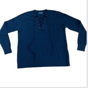 The Kooples Lace Up Front with silver eyelets .Black Wool Cashmere Blend Sweater size XS relaxed fit