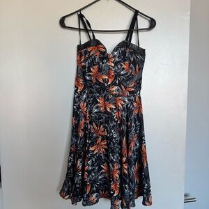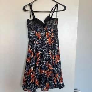 The Kooples Leather Trim Floral Dress Size Small Orange