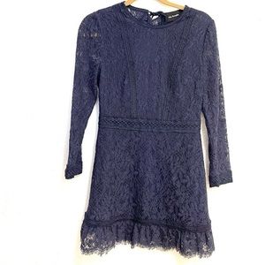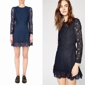 The Kooples Long-Sleeve Open-Back Mini Lace Dress Navy
