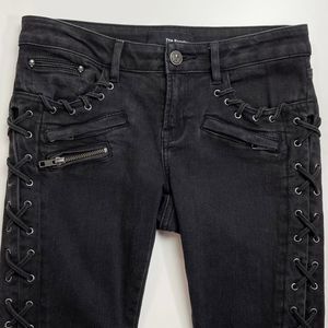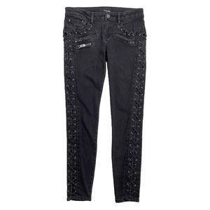 The Kooples Low Rise Braided Jean Zip Stretch Charcoal Wash Black 26 Short