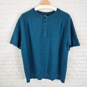 The Kooples Mens L Compact Knitted Sport Raglan Short Sleeve Henley Sweater Teal