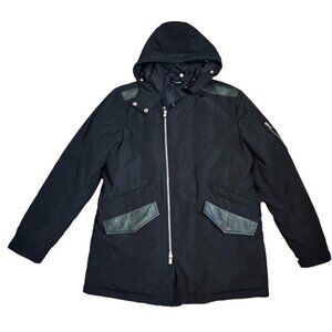 The Kooples Mens Medium Black LEATHER Trim CINCHWAIST Hooded Parka Coat MSRP 795