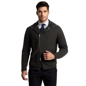 Excellent preloved condition. No issues or flaws. Stylish black jacket by The Kooples. Features a zip closure and front pockets. Perfect for a sleek look.