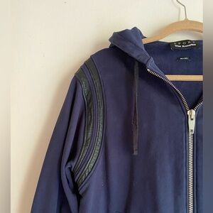 The Kooples Men's Navy Hoodie Sweater with Leather Navy Small