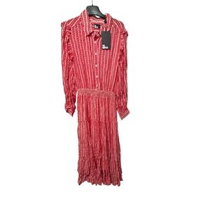 The Kooples NEW Floral Print Collared Dress Red/White Size FR 2/US Medium MSRP $525
