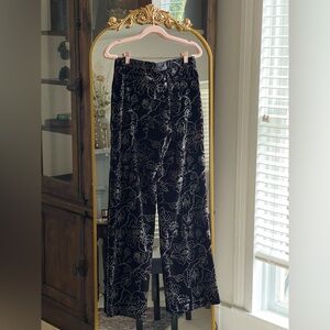 NWT The Kooples Women’s BLACK VELVET SUIT TROUSERS with Glitter Floral Print