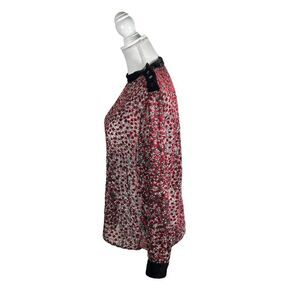 The Kooples Paris Black Semi Sheer Velvet Red Cherry Blossom Blouse