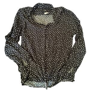 Add a touch of sophistication to your wardrobe with this Kooples Paris men’s button-up shirt. Featuring a sleek black base with an elegant polka dot print, this shirt combines luxury and style for both casual and semi-formal occasions. Made with premium materials and attention to detail, it offers a lightweight feel and a modern fit. Originally retailing for $250-$300, this designer piece is now available at a fraction of the cost.