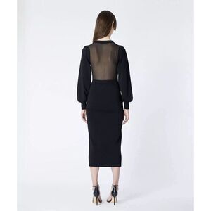 The Kooples Paris Midi Knit Dress Elastic Waist Sheer Back Black 2 women’s