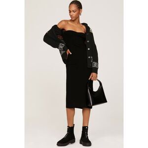 Black knit (100% Wool). Cardigan. Long sleeves. Front button closure. 26" from shoulder to hemline.pit to pit 22”.